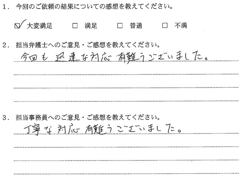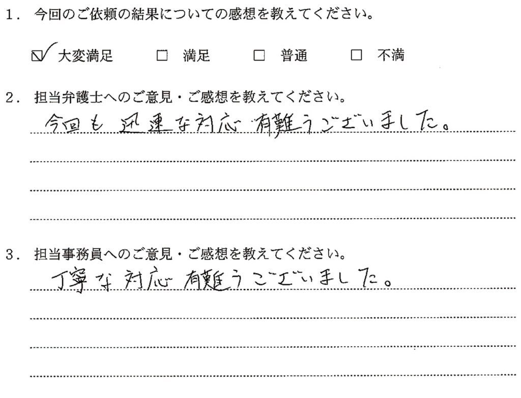 先生と同様、迅速、丁寧な対応ありがとうございました。